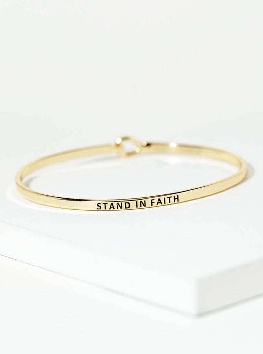 Stand In Faith Engraved Inspirational Bangle Bracelet: Rhodium