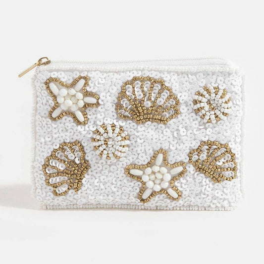 Starfish Clams And Sea Life Seed Beaded Coin Purse: MULTI