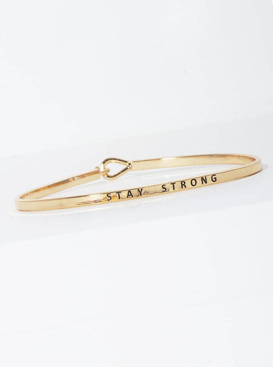 Stay Strong Engraved Inspirational Bangle Bracelet: Rhodium