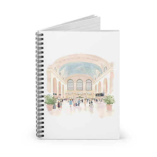 Grand Hallwatercolor Spiral Notebook — Train Station Illustration, Ruled Journal for Travel Notes & Daily Planning