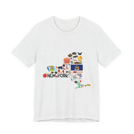New York State Icons Map T-Shirt — Illustrated NY Landmarks Tee