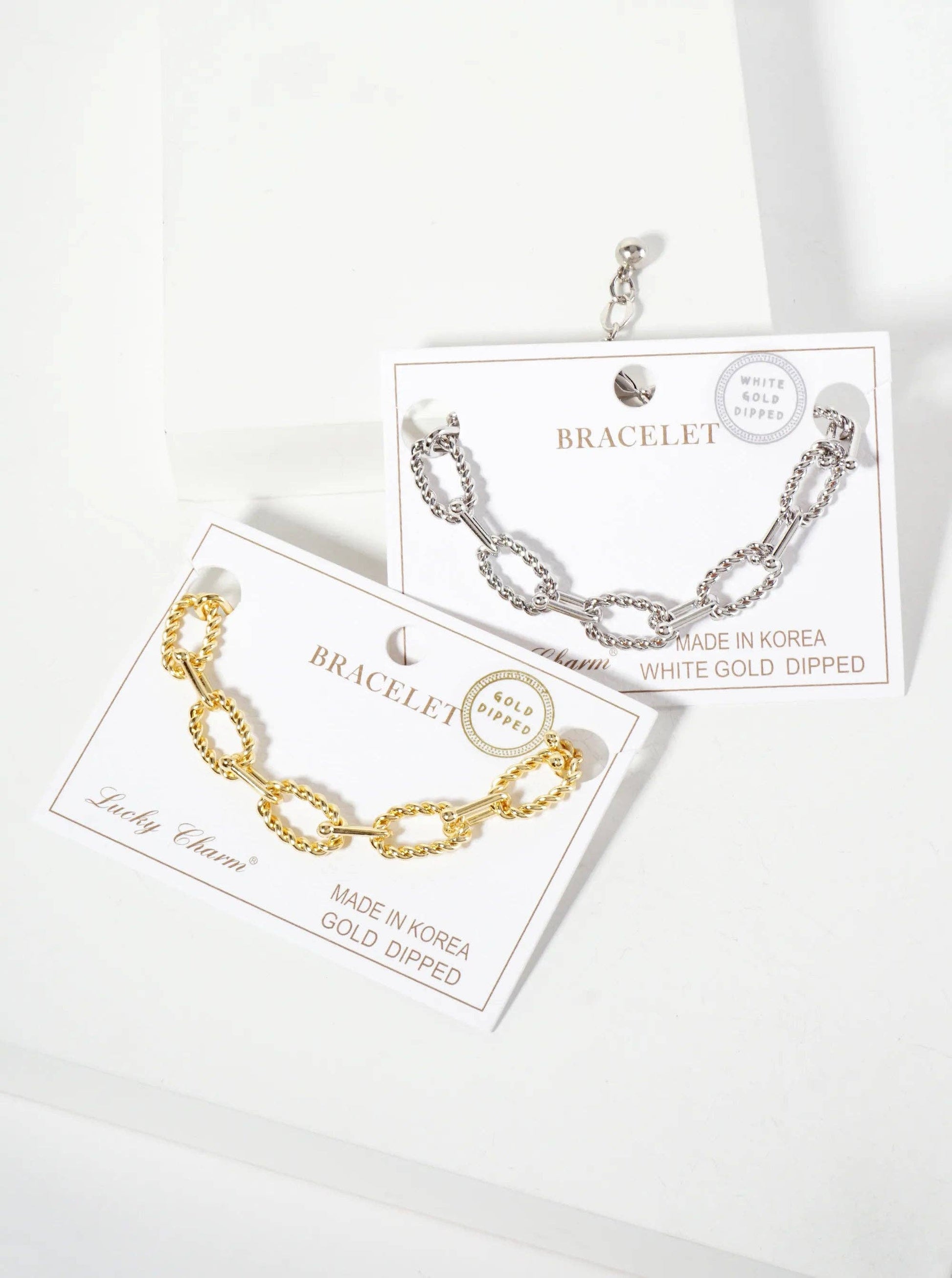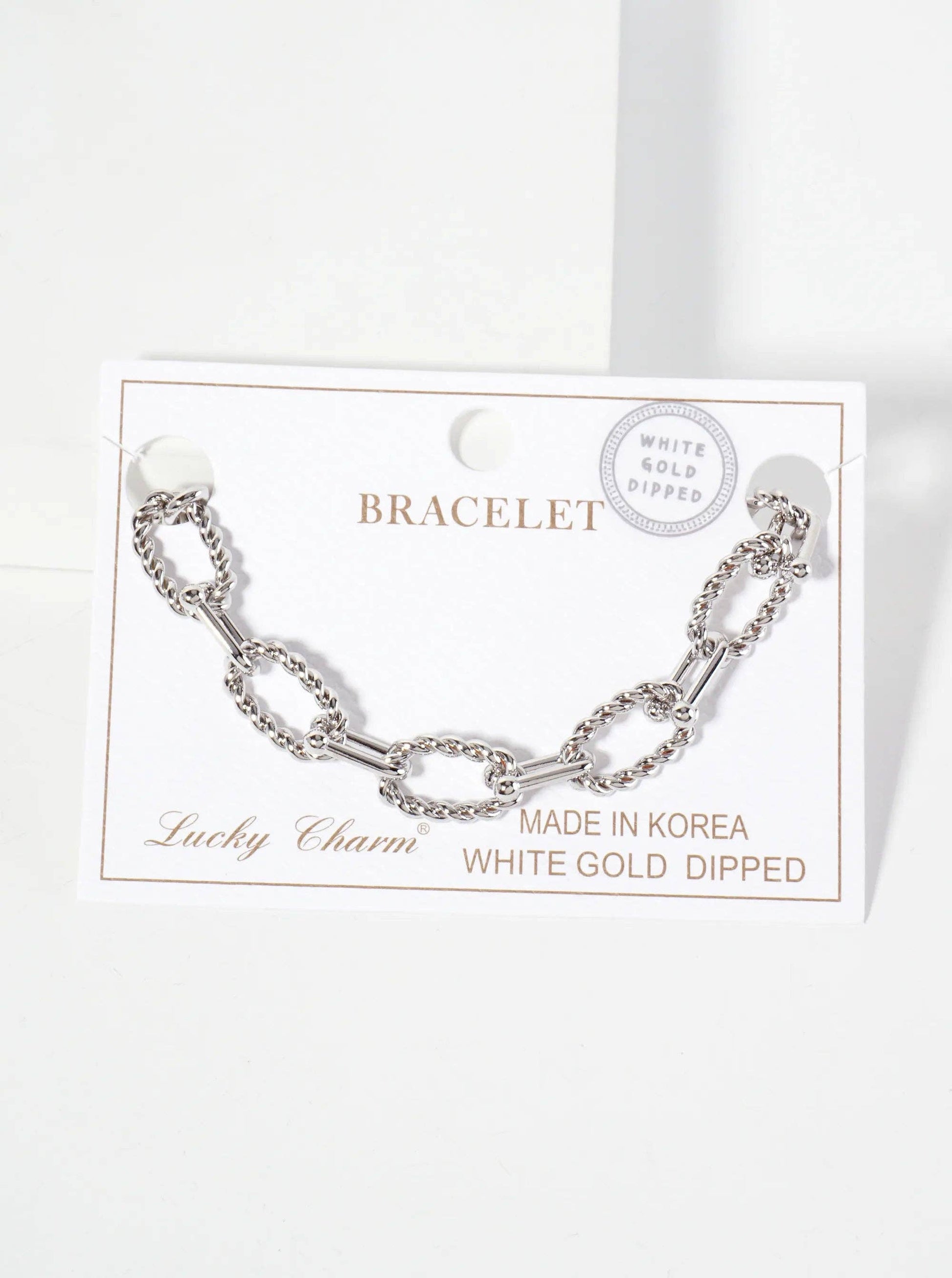 18K-Gold-Dipped Rope-Texture Polished Brass 16-11mm Chain Bracelet: Rhodium