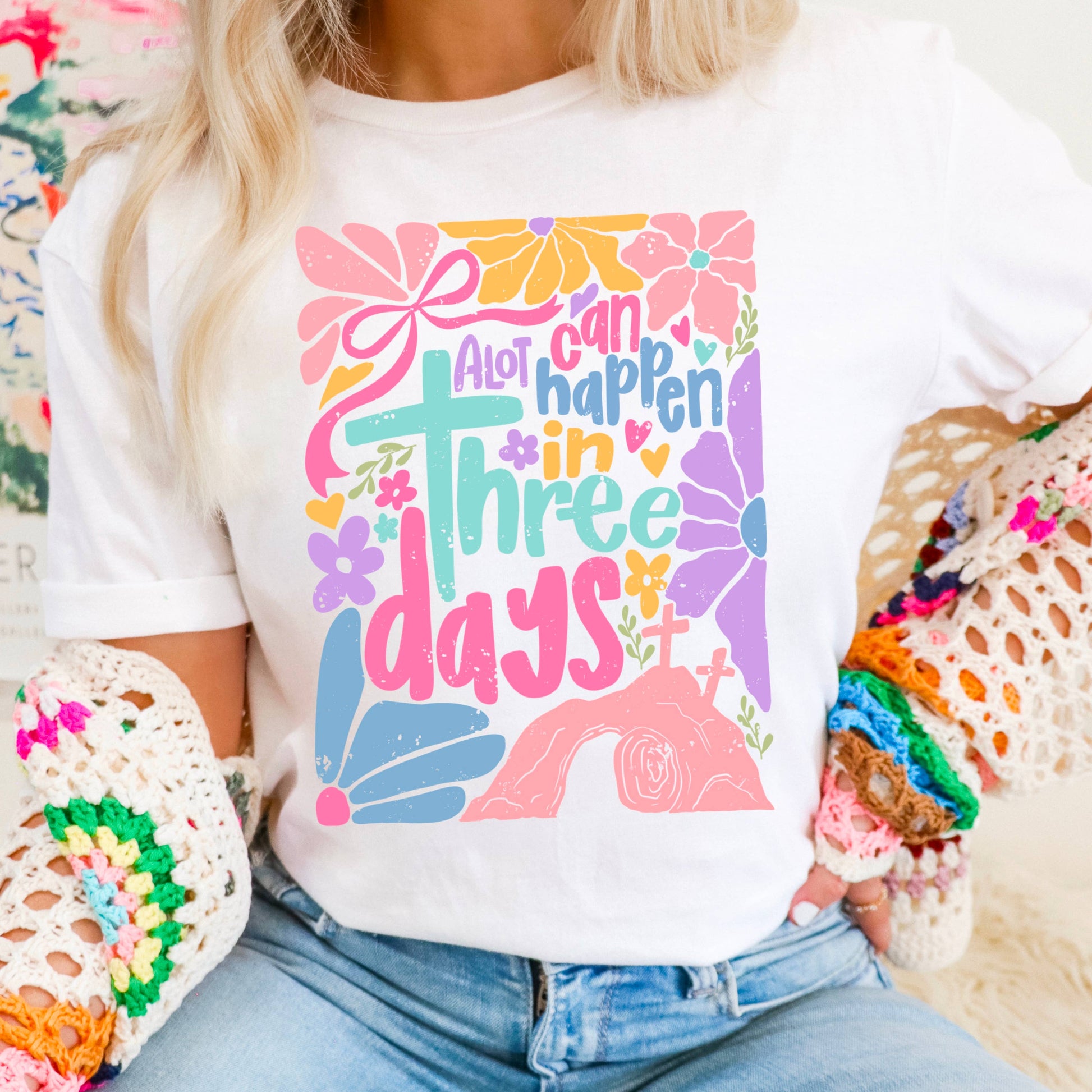 A Lot Can Happen In 3 Days | Easter Graphic Tee | Gildan: Graphite Heather / Large
