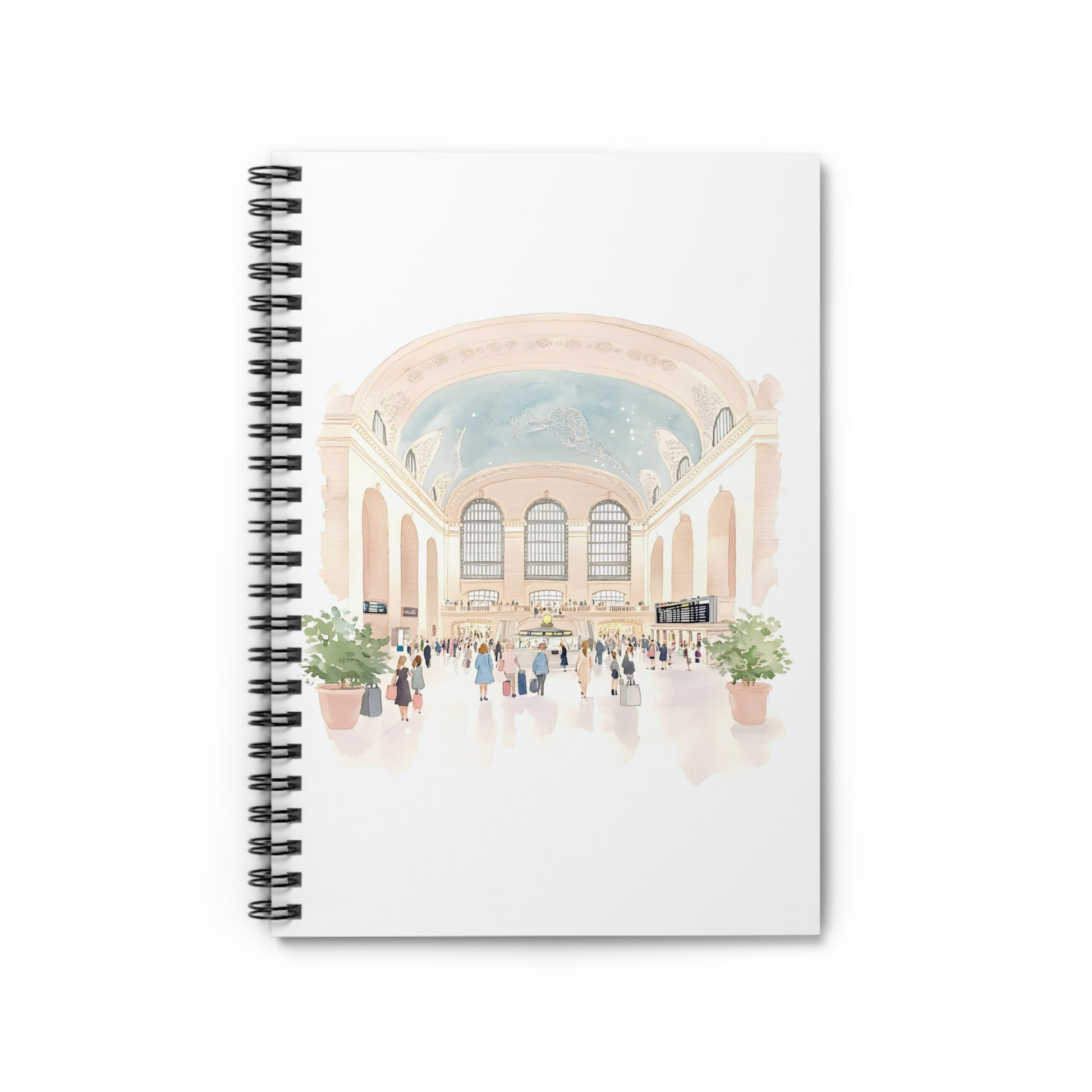 Grand Hallwatercolor Spiral Notebook — Train Station Illustration, Ruled Journal for Travel Notes & Daily Planning