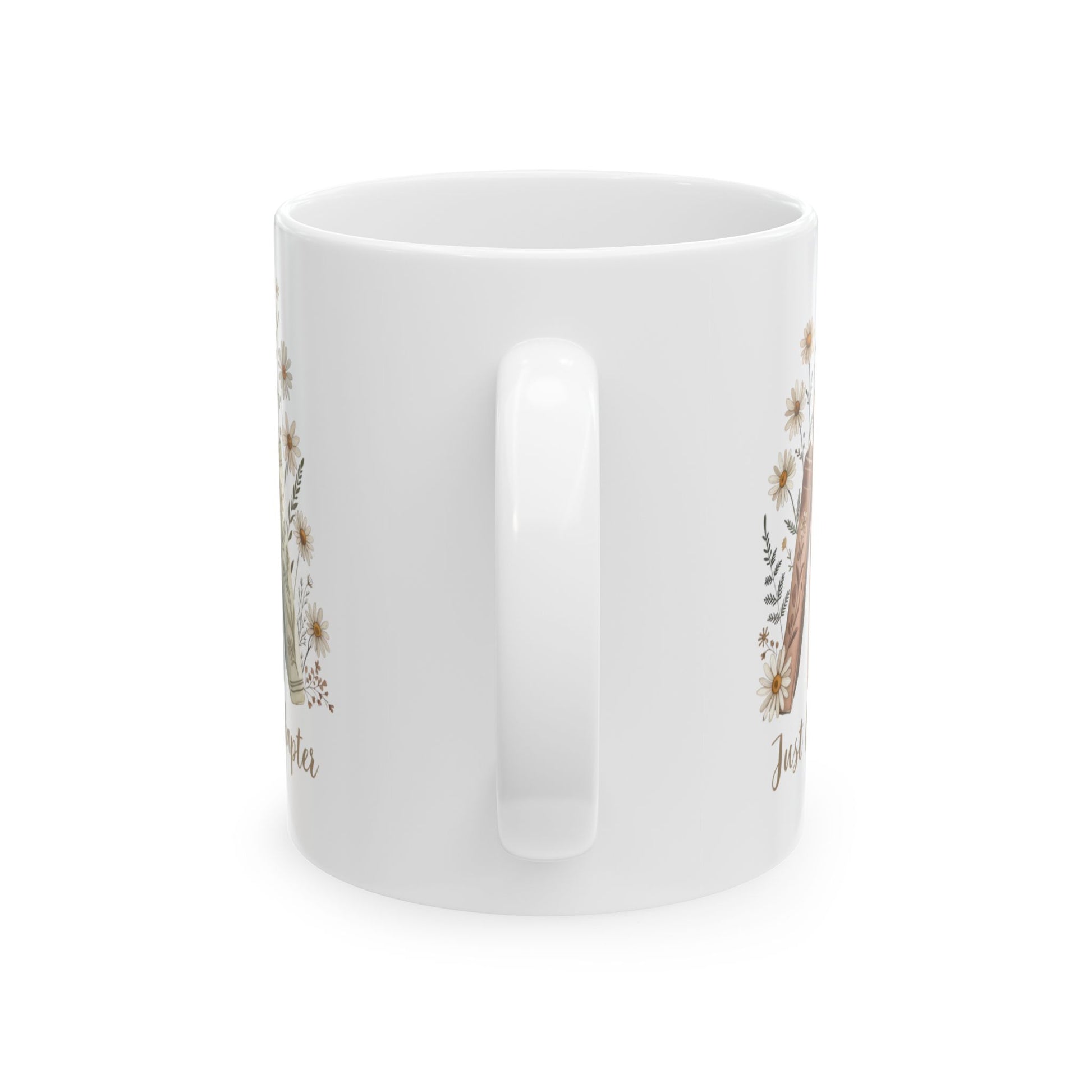 Hold a little story in your hands with this glossy ceramic mug. Soft watercolor stacks of well-loved books and wildflowers wrap around the white surface, inviting slow mornings, page-turning afternoons, and quiet evenings by lamplight. The warm, neutral palette and handwritten phrase create a calm, reflective mood — a companion for readers who savor small rituals, mark new chapters, and celebrate cozy, bookish moments. It sits comfortably in the hand with a smooth C-handle and keeps colors bright wash after wash, so the illustration feels like part of your daily routine.