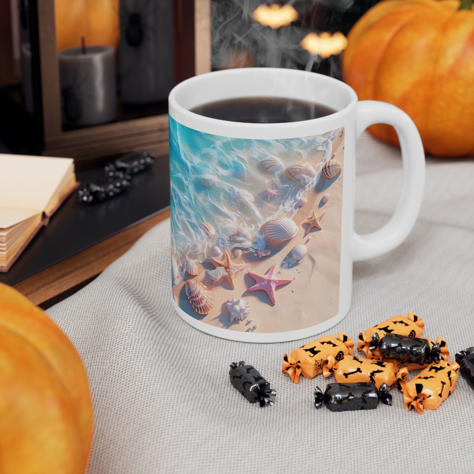 Seashell Shore Ceramic Mug — Ocean Waves Beach Coffee Cup (11oz/15oz)